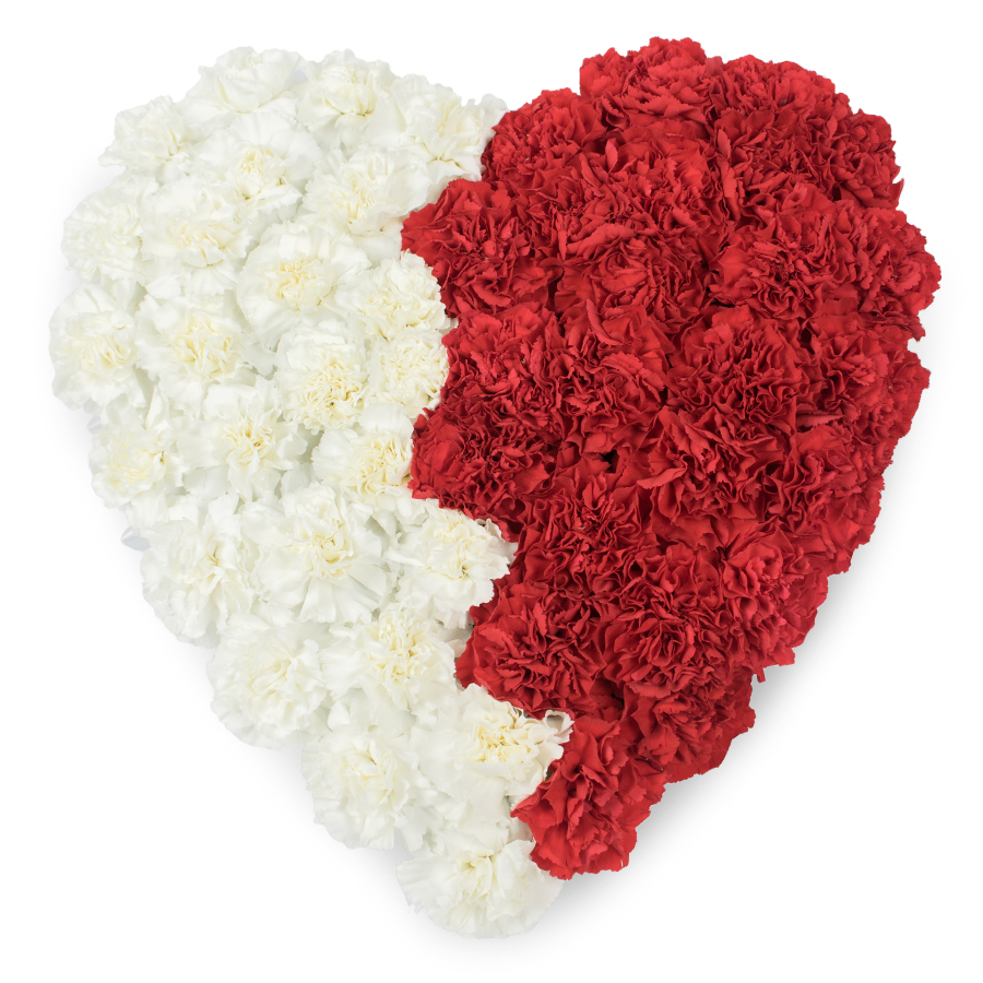 Enhance any occasion with our elegant heart-shaped mixed carnations bouquet, featuring a stunning blend of white and red carnations.